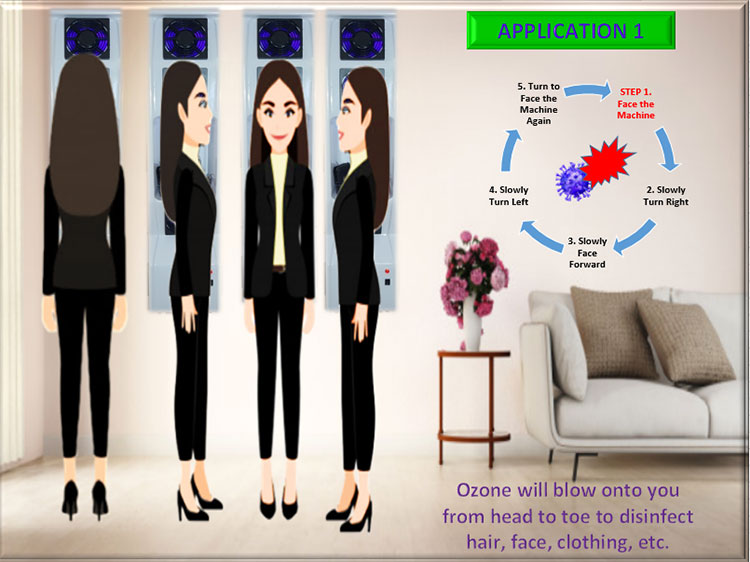 - Upon entering the home or office one would stand facing the machine with mask on.