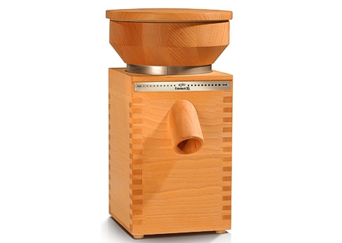 The grain mill FIDIBUS 21 measures just 32 cm in height and can easily compete with the really large grain mills in terms of performance. A 250-watt industrial motor that grinds 100 g of fine flour per minute is housed in the attractive beech multiplex housing. Whether unripe spelt, barley or spelt – 850 g of soft grain fit in the solid wood hopper. Enough to prepare 1 kg of wholemeal bread. This makes the FIDIBUS 21 particularly suitable for the small kitchen, the small household and for everyone who would like to discover the world of enjoyment of the wholefood kitchen for themselves.