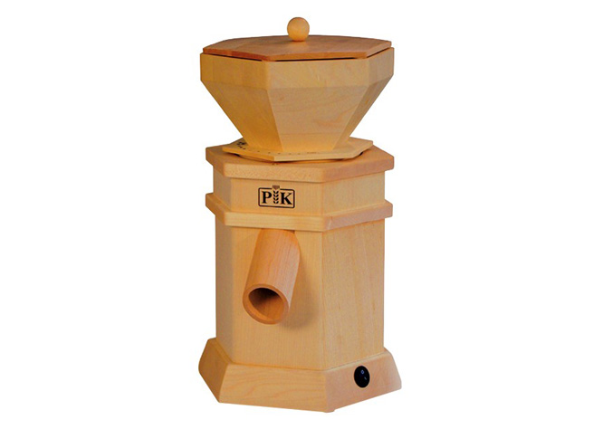 All KoMo mills are equipped with specially developed electric motors that are highly reliable and efficient, yet extremely quiet. The PK 1’s 360 watt motor enables it to produce 8-9 ounces per minute for bread flour texture. Its solid beech hopper holds 2 lb., 4 oz. of grain.